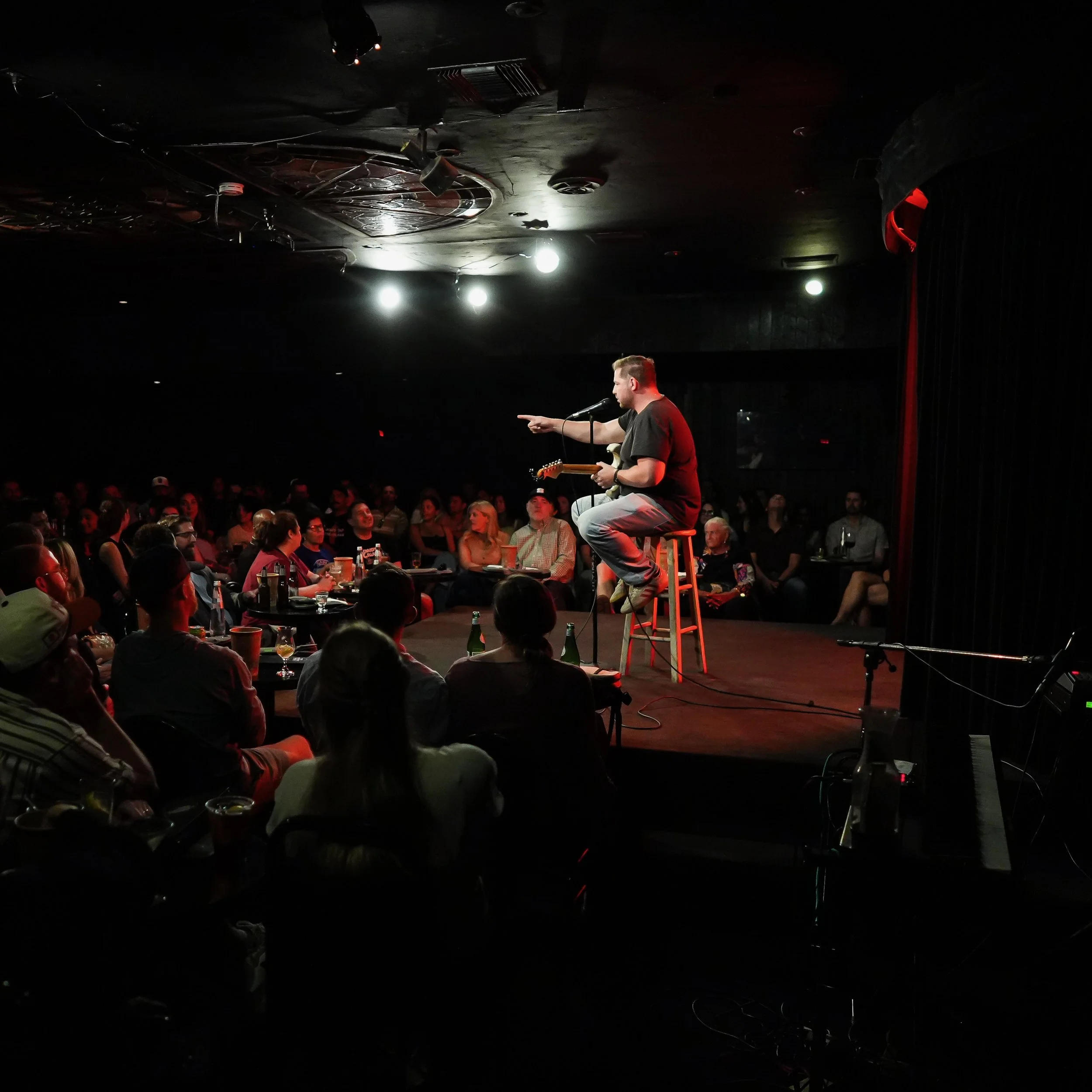 You can usually catch me tearing it up in the clubs around Chicago or New York—the kind of spots where the laughs hit hard and the drinks are strong. I've been grinding on stages from the Lincoln Lodge to the Comedy Cellar, blending tight, polished bits with off-the-cuff improv that keeps things unpredictable. (Yeah, I bring the guitar sometimes too—don't worry, it's funny, not folksy.)